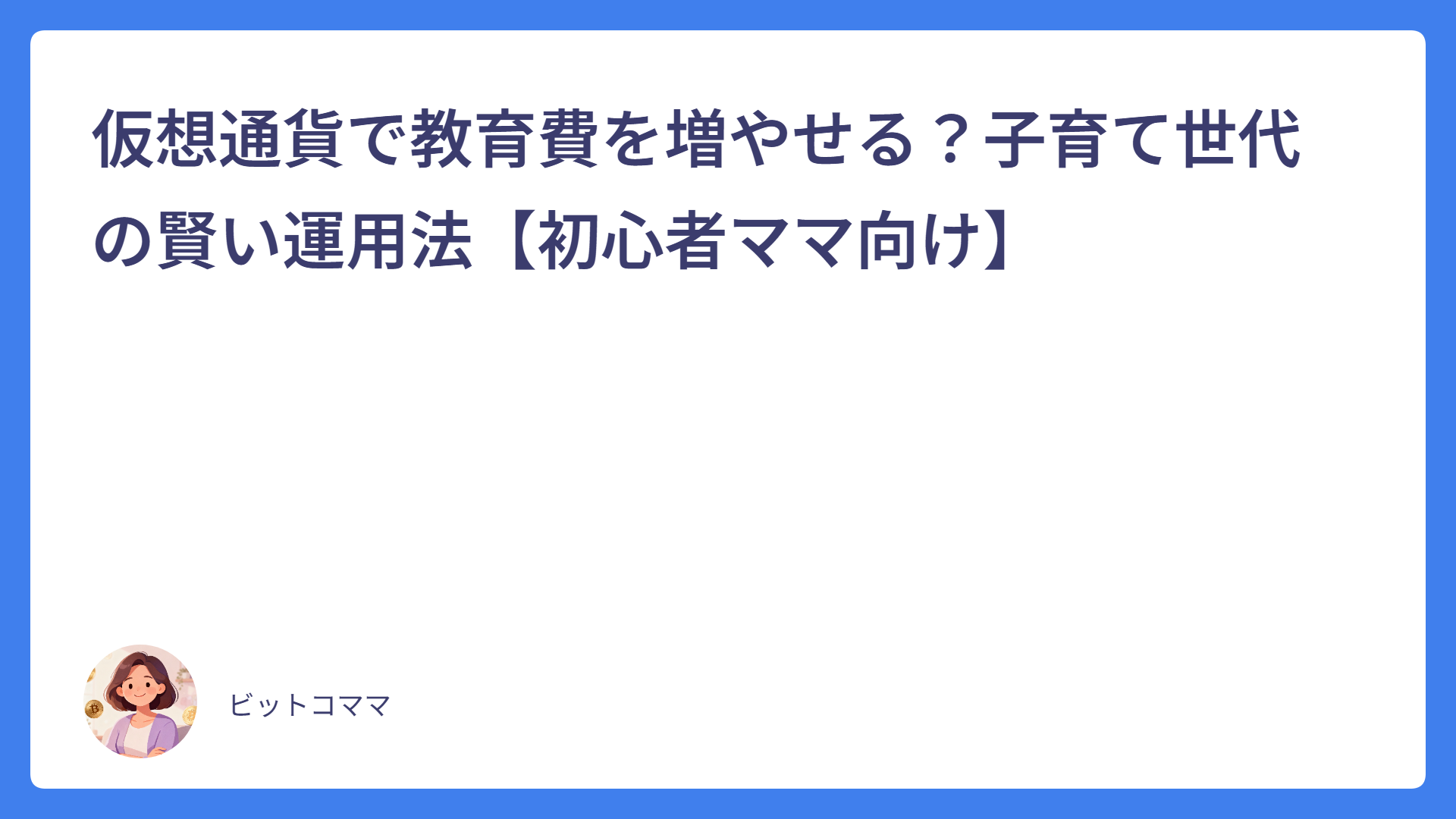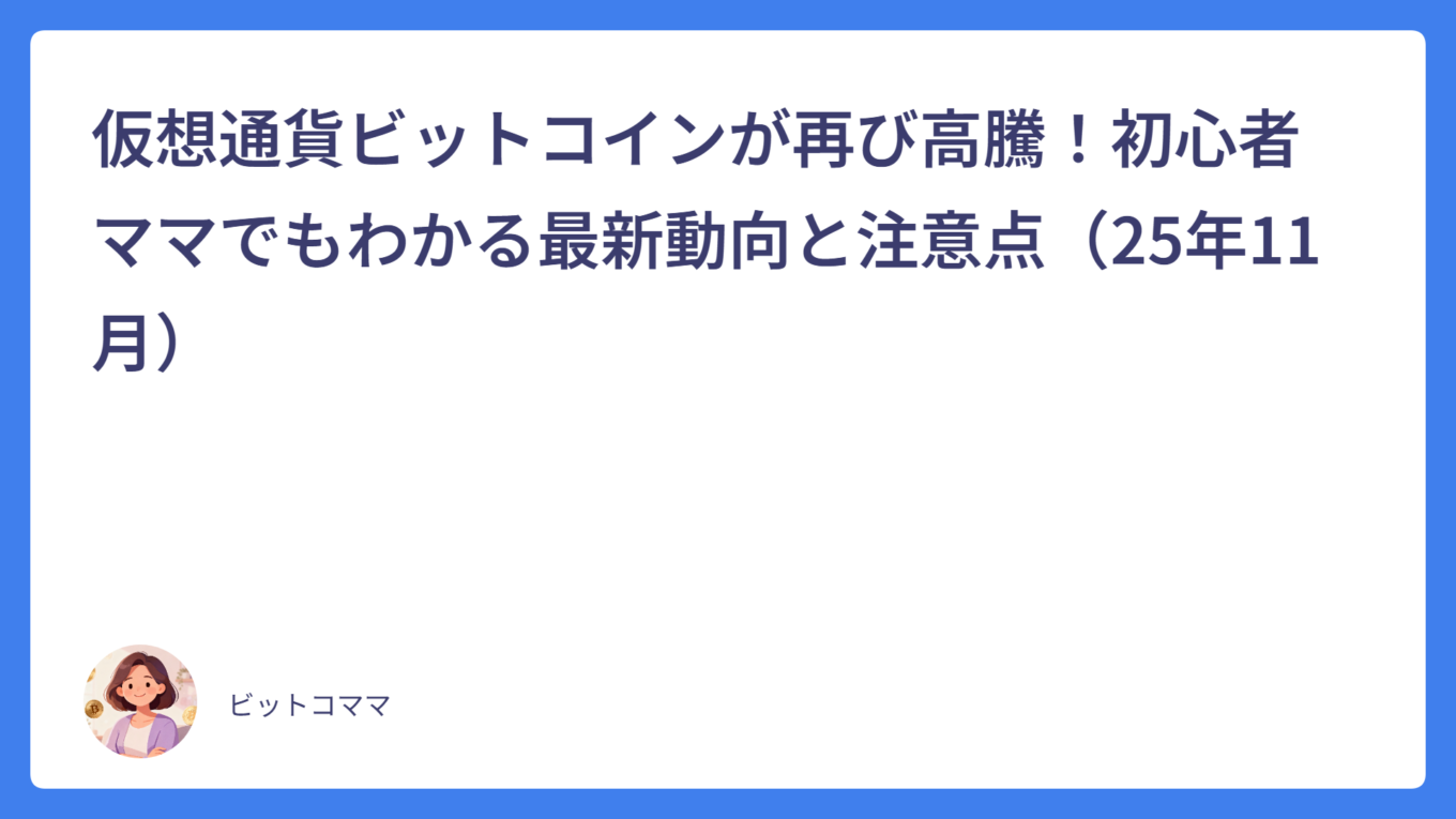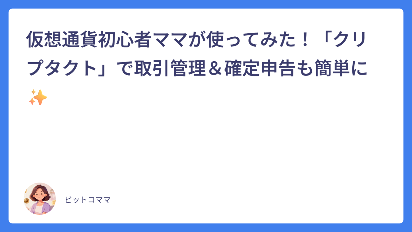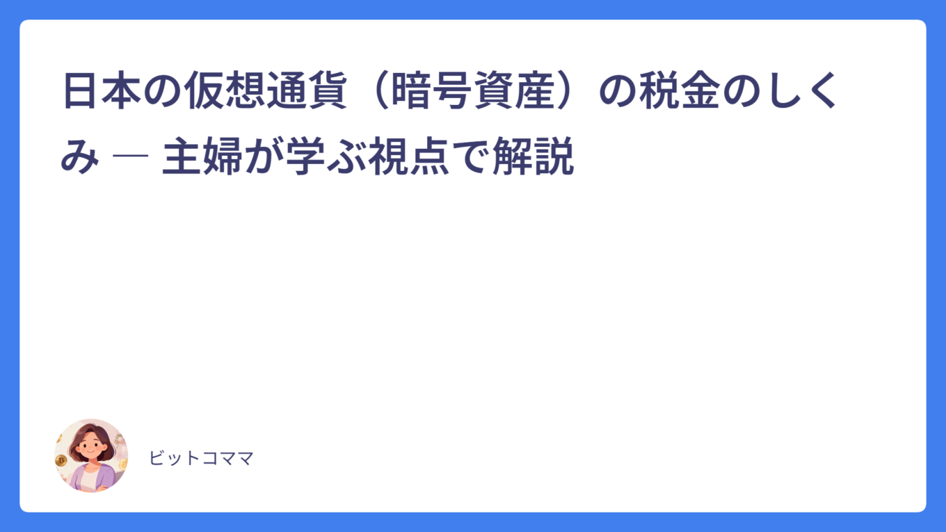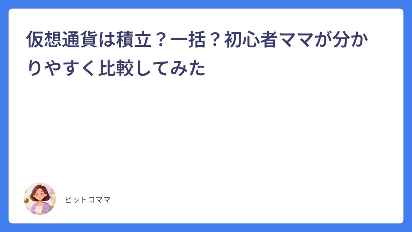 仮想通貨は積立?一括?初心者ママが分かりやすく比較してみた 2025.11.22 Uncategorized ビットコママ ビットコママのくりぷとお小遣い生活 日本の仮想通貨(暗号資産)の税金のしくみ ― 主婦が学ぶ視点で解説 2025.11.20 Uncategorized ビットコママ ビットコママのくりぷとお小遣い生活 日本ではどうやって仮想通貨が守られているの? 2025.11.17 Uncategorized ビットコママ ビットコママのくりぷとお小遣い生活 仮想通貨初心者ママが使ってみた!「クリプタクト」で取引管理&確定申告も簡単に✨ 2025.11.15 Uncategorized ビットコママ ビットコママのくりぷとお小遣い生活 OTC取引とは?難しそうで実はシンプル!ママのための仮想通貨入門 2025.11.13 Uncategorized ビットコママ ビットコママのくりぷとお小遣い生活 仮想通貨ビットコインが再び高騰!初心者ママでもわかる最新動向と注意点(25年11月) 2025.11.12 Uncategorized ビットコママ ビットコママのくりぷとお小遣い生活 【主婦でもわかる】CMEの窓ってなに?ビットコインの“値動きのクセ”をやさしく解説 2025.11.11 Uncategorized ビットコママ ビットコママのくりぷとお小遣い生活 仮想通貨で教育費を増やせる?子育て世代の賢い運用法【初心者ママ向け】 2025.11.10 Uncategorized ビットコママ ビットコママのくりぷとお小遣い生活 【初心者ママ向け】仮想通貨で副収入!ビットコイン積立で月1万円をコツコツ育てよう 2025.11.10 Uncategorized ビットコママ ビットコママのくりぷとお小遣い生活 ビットコインを支えるブロックチェーンの仕組み|なぜ改ざんできないのか 2025.11.08 Uncategorized ビットコママ ビットコママのくりぷとお小遣い生活 もっと見る